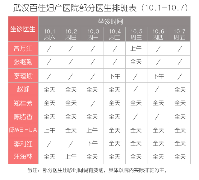 为更好地为江城女性提供优质医疗服务,武汉百佳妇产医院实行“无假日”门诊,十一期间医生正常接诊各类检查项目均正常进行,与此同时,还特邀武汉同济医院曾万江教授来院亲诊。